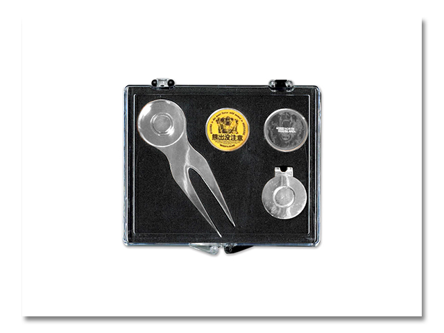 "熊出没注意"シリーズのゴルフマーカーセット!マーカー×2、マーカー台座×1、マーカー台座付フォーク×1のセットです。