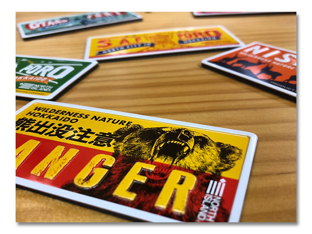 北海道をイメージしたデザインの凹凸があるアルミプレートマグネット。全8種類。